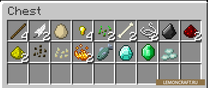 Данный мод добавит в игру птичьи гнезда, которые будут падать при разрушении блоков листвы. Из них вы сможете с определенной вероятностью достать различные предметы: начиная от яиц и заканчивая алмазами.